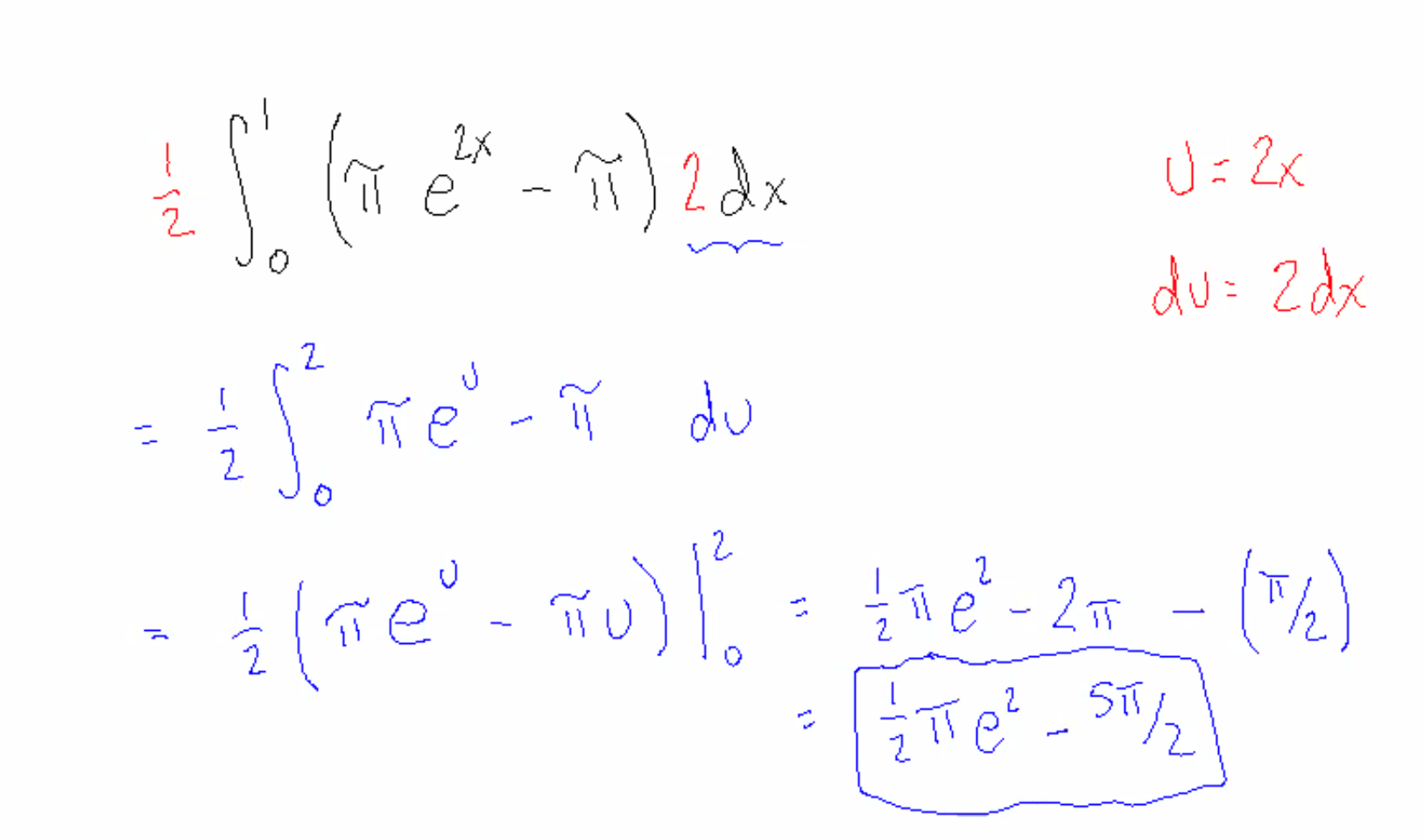 The anti-differentiation of e^2x =1/2 e^2x (because the differentiation [2e^2x] would need to cancel out the 1/2)