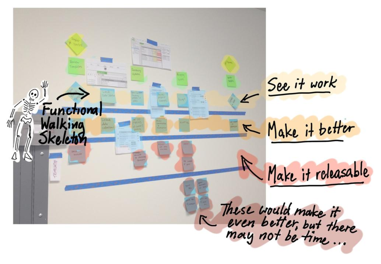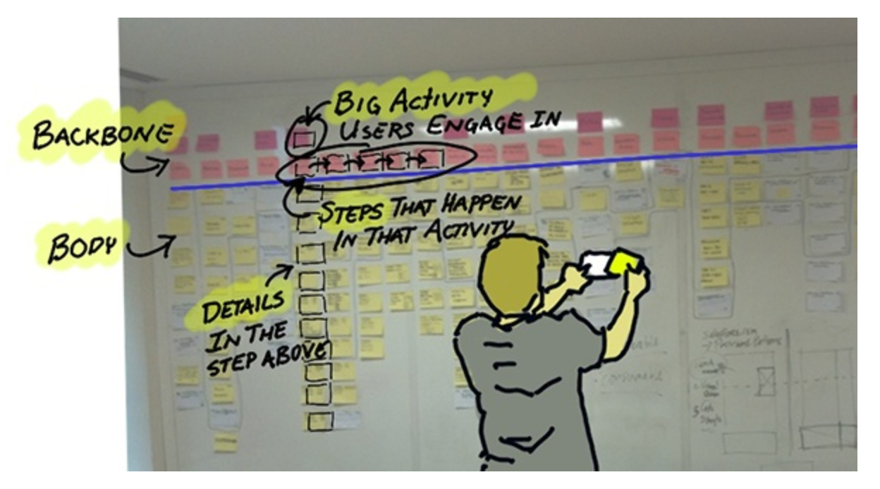 This is the process that the book recommends. The “backbone” are steps a user (or possibly system) takes. Details go vertically. Some details get kicked out to a future